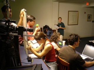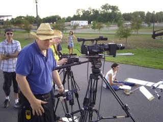 I learned a lot that summer. I can’t say I’m running to L.A. to be a script supervisor, but it was a good experience. There is usually one “scripty” per film–sometimes two if there is a second unit. The scripty is the right side of the director’s brain. I was responsible for keeping track of each and every shot the director wanted, and making sure he got each shot he wanted. I was responsible for recording the technical details for each shot (like, the lens, the zoom, the height of the camera, its distance from the object, etc) and also the time stamp of each take (we didn’t have a real digital clapper). I was also responsible for continuity photos (pictures taken of the set before and after a take). Was the glass half full, or three quarters full at that particular spot on the actor’s line?