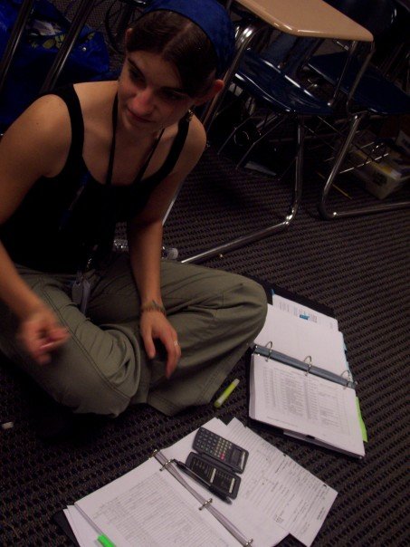 | I’m the person hunched over a pile of papers |